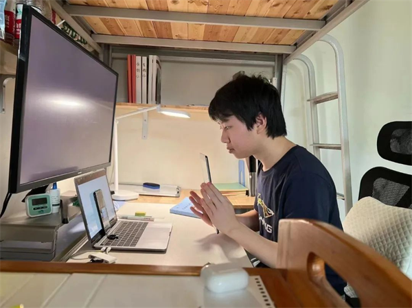 刘思源同学在家中和居民们直播连线,让居民们通过手机远程观看操作方法。虽然不在同一现场,但居民们提问的热情丝毫不减。