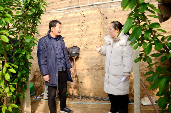 图一:镇村干部和农业技术人员正在为大棚测温(图片由张莉娜提供)