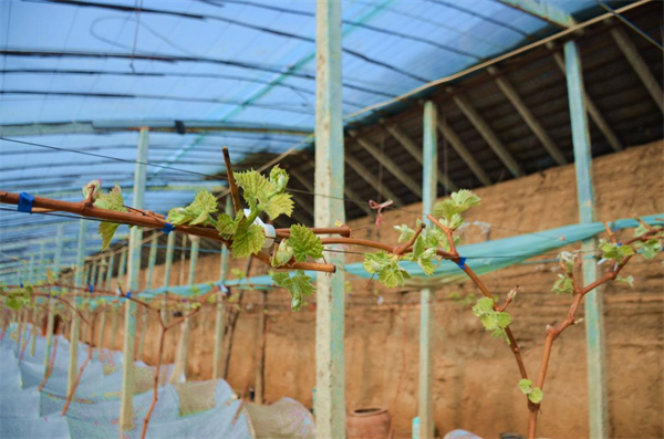 来到雷东宏的葡萄棚里,一抹抹嫩绿色的叶子点缀在葡萄藤间,露出的小小嫩芽为葡萄大棚增添了一份生机勃勃的春意。镇村干部一边记录,一边叮咛雷东宏要时刻关注大棚的温度。