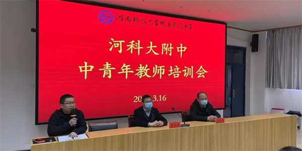 发布时间:2023-03-22 10:36:12 | 来源:中国网 | 作者:辛文 | 责任编辑:乔沐为培养一批师德修养高、业务素质精、教学技能全、教学基本功过硬的中青年教师队伍,3月16日,河科大附中在实验楼二楼会议室开展了中青年教师培训活动。会上,副校长梁金贵给青年教师做了专题报告,为各位中青年教师提供了相互交流和学习提高的机会。副校长胡建伟出席会议。会议由教导处副主任杨延锋主持。
