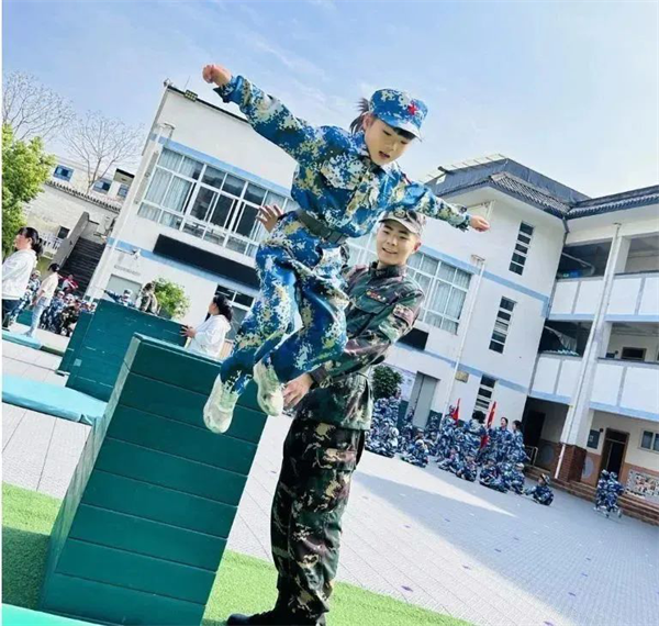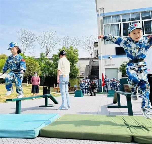大林幼儿园国防教育活动常抓不懈,形式丰富多彩,系统的国防教育课程成为孩子们学习和成长的“发动机”,孩子们在训练中锻炼自我,增强自信,提高独立、自理能力等,形成了良好习惯和意志品德。