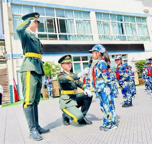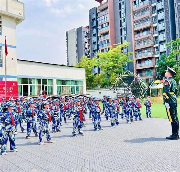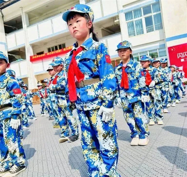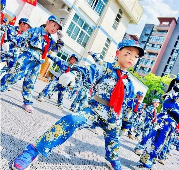 站军姿、整理军容、立正、稍息、敬礼、跨立、踏步、坐下起立……虽然小兵们动作是稚嫩的,但挺拔的身姿时刻都在展现着小兵们的自信。在这一刻,他们就是最棒的爱国小小兵!