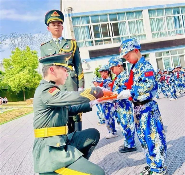 在结营仪式上,教官亲自为小兵们颁发“小兵”的勋章,祝贺孩子们成为一个坚强勇敢的小小兵。