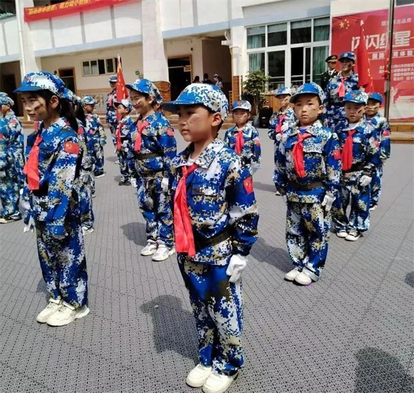 红星营小兵的成果展在拉军歌的热闹气氛中展开。甜甜的童声拥有大大的能量,嘹亮的军歌在操场回荡。