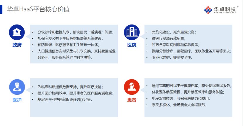他还提到,华卓构建的区域医疗健康服务HaaS平台,实现了两大层面的赋能:
