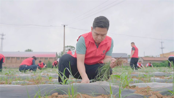 队员们和烟农打成一片,不畏脏、不怕累,井然有序的清除着田间的杂草,烟田中,红色党旗在田间飘扬,红色的志愿者弯腰在帮助烟农,掀起了一股助农热潮。(图文:时红军、任少杰、王世宇)