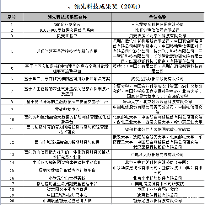 发布会上,360、腾讯、比亚迪、贝壳等18个获奖成果在现场分别围绕房产信息深层次服务、AI、5G实现远程操控现场无人化、少人化作业等详细介绍了其技术创新性、成果领先性及应用前景。