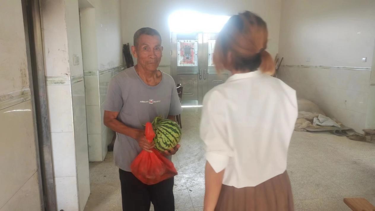 活动结束后,西湾村党支部书记黎先江带领村两委和志愿者,将包好的粽子及西瓜送给部分困难老党员、特困户、独居老人,在端午佳节到来之际,为他们送上温暖和祝福。