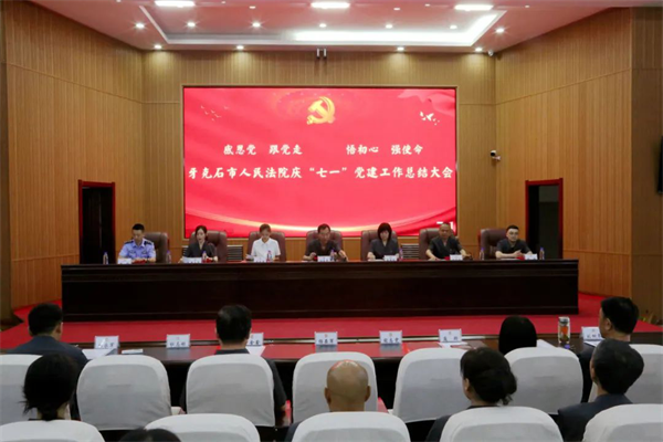 发布时间:2023-07-03 15:24:01 | 来源:中国网 | 作者:张健 | 责任编辑:乔沐为庆祝中国共产党成立102周年,传承红色基因,坚定理想信念,6月29日下午,牙克石市人民法院开展“感党恩跟党走悟初心强使命”党建工作总结大会。牙克石市直属机关工委副书记寇志雯同志参会指导,院党组书记、院长杨丕军参加会议并讲话,会议由党总支副书记贾玉萍主持,院班子成员、全体党员干警及入党积极分子参加会议。