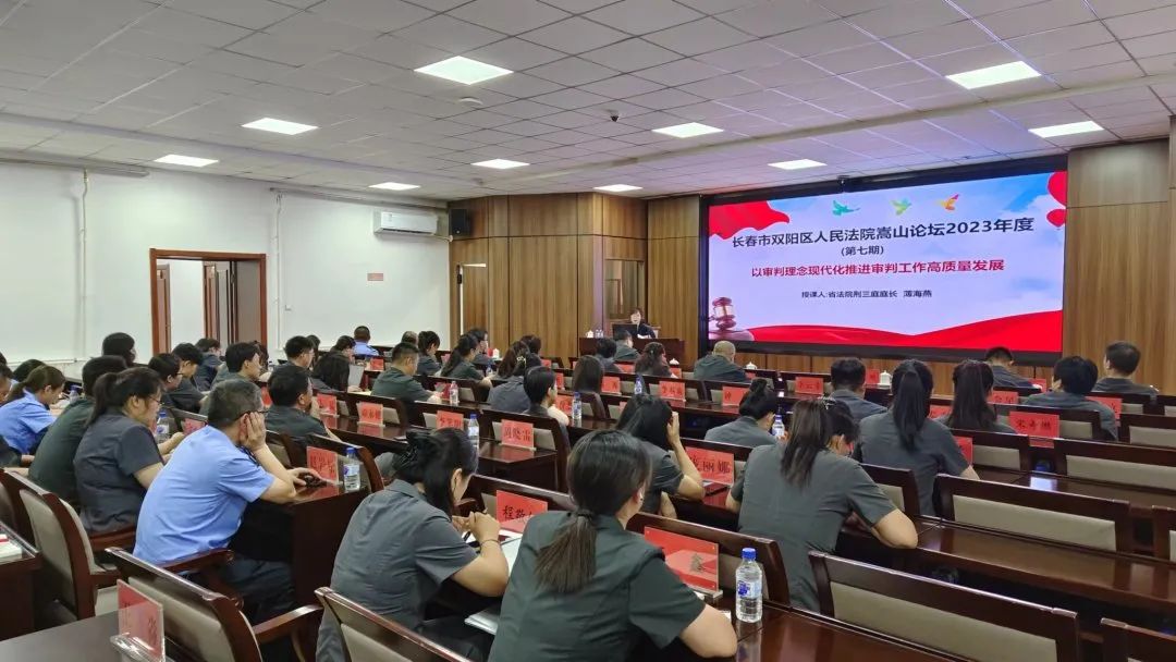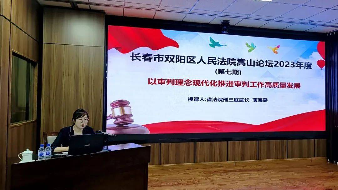 7月19日,双阳法院举办嵩山论坛2023年度第七期,特邀吉林省高级人民法院刑三庭庭长薄海燕围绕“以审判理念现代化推进审判工作高质量发展”主题专题授课。双阳法院副院长梁伟主持本次论坛活动,全体在院班子成员、员额法官和法官助理、文员参加学习。
