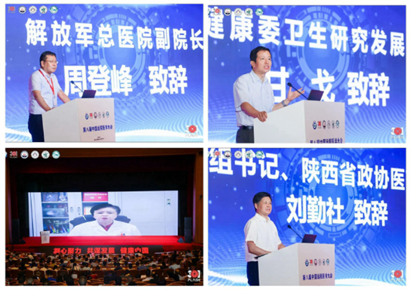 开幕式上,解放军总医院副院长周登峰、国家卫健委体改司副司长薛海宁、国家卫生健康委卫生研究发展中心副主任甘戈、中国老年医学学会会长范利、陕西省政协医药卫生体育委员会主任刘勤社分别发言。中央军委后勤保障部信息中心主任初宁、解放军总医院医疗保障中心主任姚树森、西安市卫生健康委员会副主任丁力等军地领导出席会议。参加会议还有两院院士、专家学者、医疗机构、科研院所、互联网企业代表等各界人士1100多人共襄盛举。