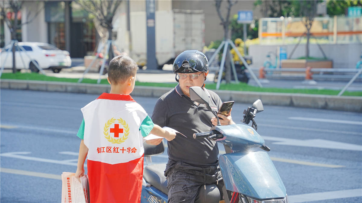 活动中还有这样一群小小身影,他们穿着红色马甲,拿着“三献”防艾的宣传单向街边路人讲解科普知识。