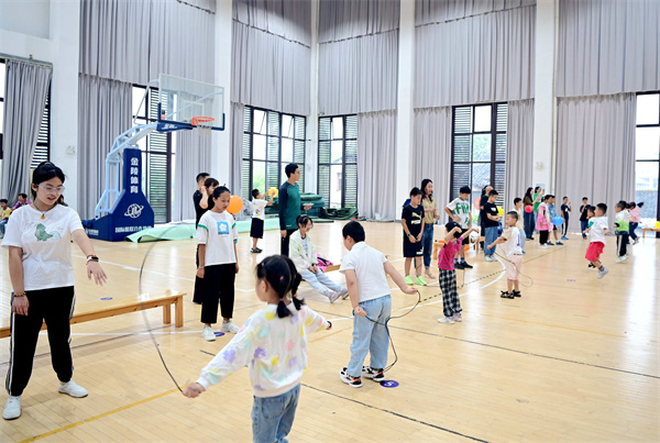 学校还为小萌娃们准备了“助力亚运”体健活动,孩子们在体育馆完成“足”智多谋、“绳”采飞扬、乘风破浪三项体育活动,快乐迎亚运的浓厚氛围扑面而来。活动旨在鼓励小朋友积极参加体育锻炼,有强健的体魄,才能为学习打下扎实的身体基础,用自己的方式迎接亚运的到来。完成亚运体健活动后,孩子们来到自己的教室,把任务卡贴到签名墙上,班主任为孩子们戴上专属班级的小徽章。学校还特别制作了留念拍照框,家长们用镜头记录下孩子们的笑颜,温暖的校园里留下了属于他们的记忆,定格了属于他们的美好瞬间。