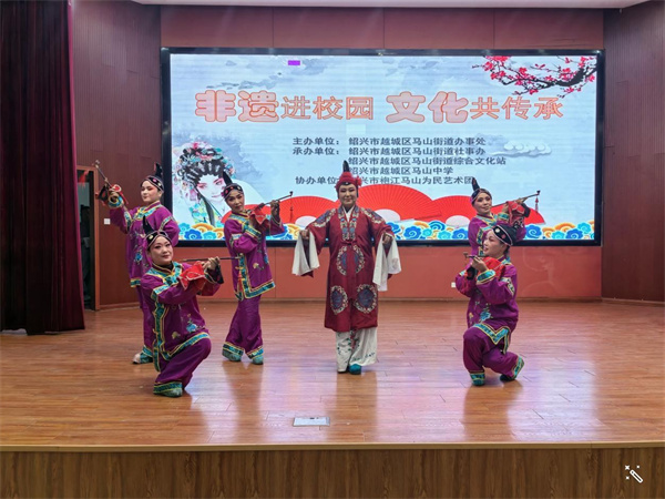 为弘扬民族文化,展现国粹精华,将中华优秀传统文化更好地继承并发扬光大,近日,绍兴市越城区马山街道联合马山中学举行了“非遗进校园文化共传承”活动,马山中学校团委积极组织全体团员和初一少先队员们来到博雅楼近距离体验非遗文化,感受戏曲艺术的魅力,极大地激发了学生们对中华优秀传统文化的热爱,增强了学生的民族自豪感和文化自信心。