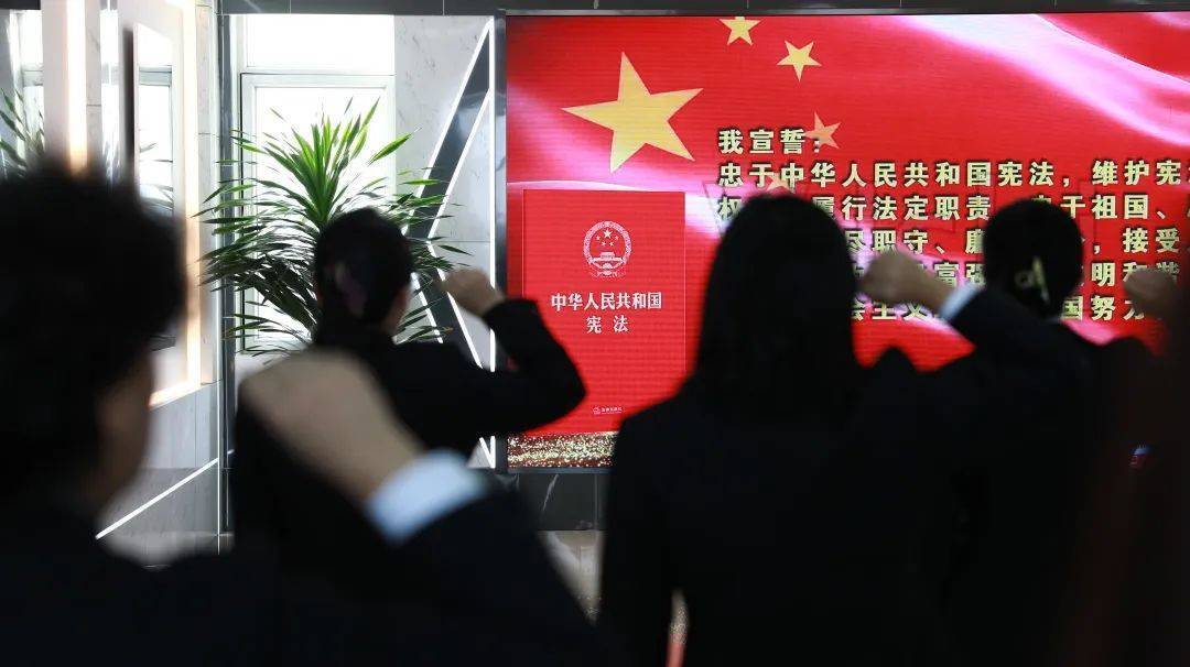 伊通法院举行宪法宣誓仪式,法官干警整装肃立,举起右拳,面向国旗向宪法庄严宣誓:“我宣誓,忠于中华人民共和国宪法,维护宪法权威,履行法定职责,忠于祖国、忠于人民,恪尽职守、廉洁奉公,接受人民监督,为建设富强民主文明和谐美丽的社会主义现代化强国努力奋斗!”誓词虽短,但字字铿锵,表达了对宪法的信仰、敬畏和尊崇,以及维护宪法权威、捍卫宪法尊严的决心。铮铮誓言,久久回荡,充分展现了伊通法院干警忠于宪法、维护宪法的郑重承诺。