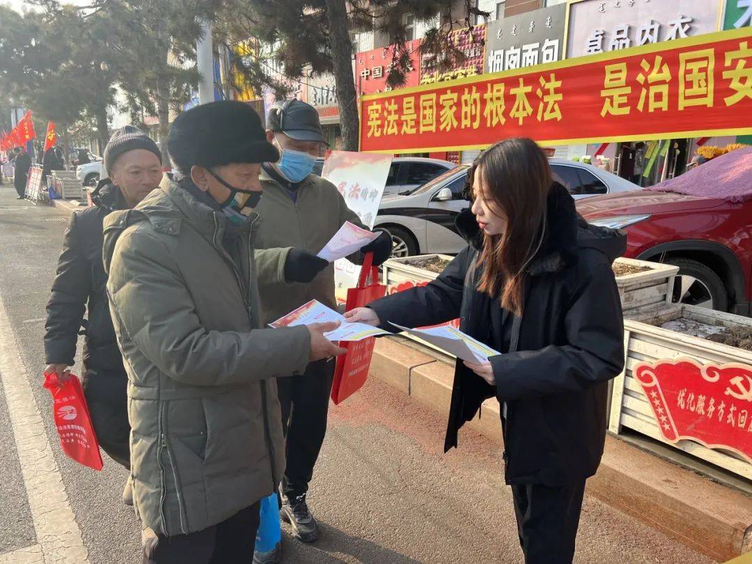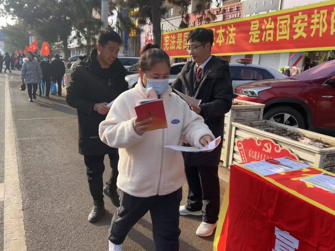 伊通法院组织干警走进伊通大街,采用“摆摊”的形式开展宣传。法院干警通过发放普法宣传资料、讲解法律知识、解答群众法律疑问等方式,积极向赶集群众讲解国家宪法日的由来和宪法相关知识,让群众了解宪法、掌握宪法,从而提升学法、守法、用法的意识和能力,引导群众学会通过法律途径解决矛盾纠纷、维护自身合法权益。