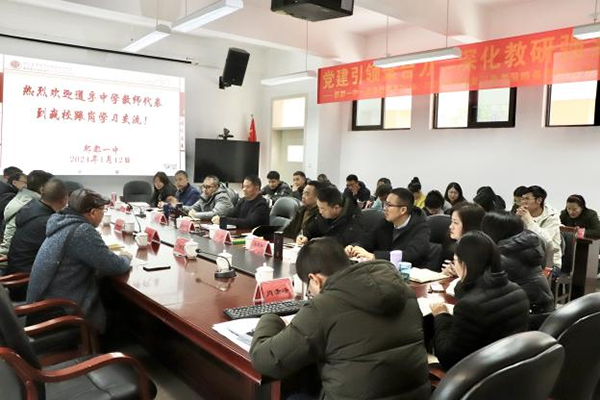 发布时间:2024-01-24 16:53:29 | 来源:中国网 | 作者:郫都一中 | 责任编辑:程泽为进一步落实教育部“组团式帮扶”政策,强化四川省成都市郫都区第一中学对口帮扶道孚中学教育教学工作实效,引领道孚县教育教学大力发展,2024年1月8日至12日,道孚中学行政、教师代表到郫都一中开展为期5天跟岗学习交流活动。1月12日上午,郫都一中党委书记李玉林、校长蒋春鹏携全体行政、名优教师代表和道孚中学行政、教师代表一行19人,在一教会议室开展教育教学现场交流会,并扎实开展了课堂教学研讨和德育工作分享活动。