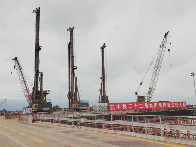发布时间:2024-06-14 16:49:12 | 来源:中国网 | 作者: | 责任编辑:严格在珠肇高铁西江特大桥段项目建设现场,机器轰鸣、车辆来往穿梭,一派繁忙景象。六台徐工大吨位旋挖钻机正全力推进工程建设。