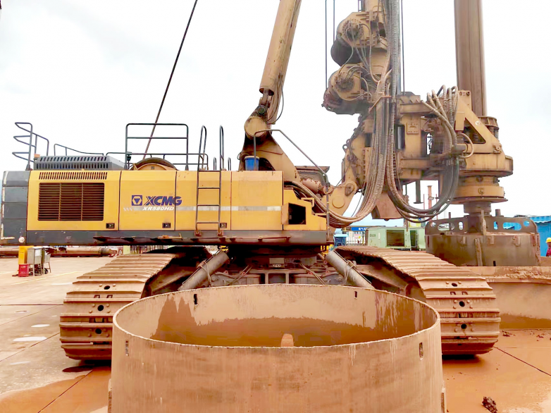 在深水基础施工中,徐工采用创新的钢护筒加超大旋挖钻施工方法,确保一次性成孔,大大提升了施工效率。