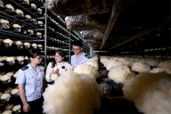 2024年6月17日,国家税务总局古田县税务局青年干部在晟农无公害银耳基地了解生产情况,并为该企业人员进行税收优惠政策讲解。王旺旺摄
