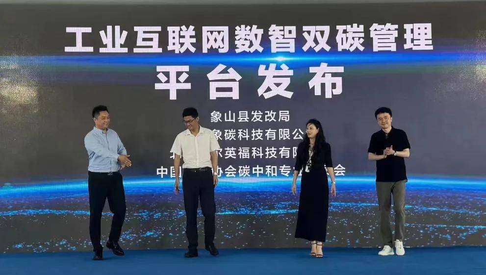 “工业互联网数智双碳管理平台”由象山县发改局局长朱约余、泰尔英福业务发展部总经理车涵、宁波象碳科技有限公司董事长张巧敏、中国节能协会碳中和专业委员会创新发展部部长张京良共同发布。