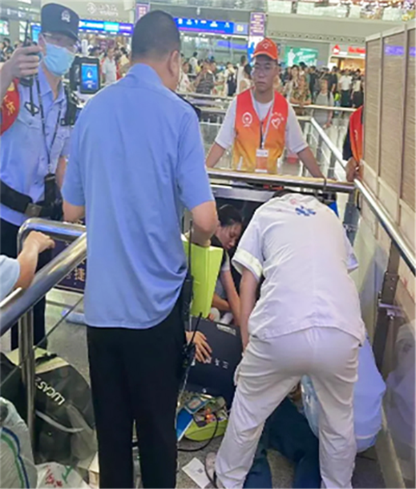 “现场有没有医护人员!”“现场有没有医护人员!”一声声急迫的呼救声从检票口传来……