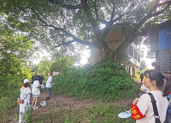 我小时候常在这棵树下乘凉,如今这里变得萧条凄凉,这里曾经是代市镇通往德胜、前锋镇必经的驿站,当年很多人赶场走累了就在这里休息,在这棵古树下,有理发的、补锅的、摆摊的;这棵大树如慈母般守护我们夏日的阴凉;我希望它可以一直枝繁叶茂。”虽然居住前锋多年,但我经常到此宣传森林防灭火、开展地质灾害及火险隐患排查、对古树进行虫洞检查,保护古树是我们的光荣使命,也是我们每位村居民义不容辞的责任,保和社区居务助理余立林介绍道。