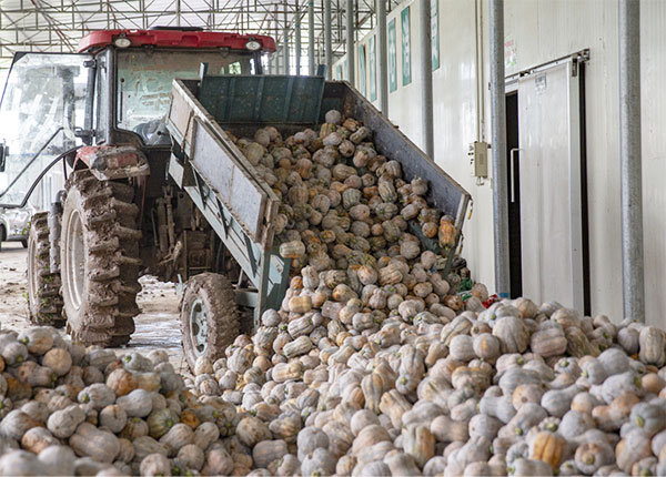 瞿河镇板板桥村位于镇辖区西南部,该村以蔬菜产业为主导,主要种植特色南瓜,种植面积多达2000余亩,年产南瓜400万斤。金香南瓜因粉糯香甜、营养丰富,深受广大消费者喜爱,产品不仅销往国内各大城市,还远销越南、泰国、马来西亚等东南亚国家,逐渐成为瞿河镇新的名片。