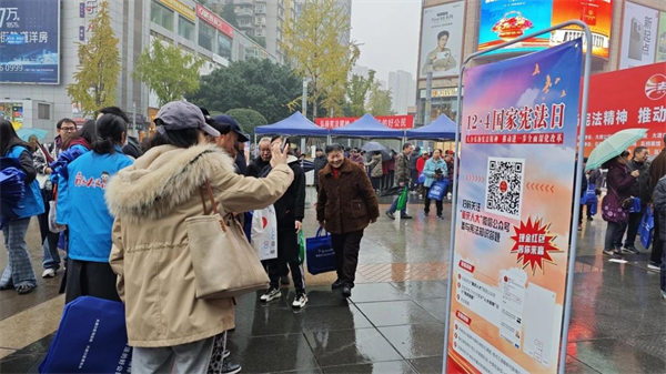 “这次活动让我们了解了宪法赋予我们的权利和义务,也学会了遇到问题如何运用法律武器维护自己的合法权益。”12月4日,大渡口区群众汪阿姨在九宫庙商圈参加了一场以“大力弘扬宪法精神,推动进一步全面深化改革”为主题的宣传活动,虽然现场细雨绵绵,但群众参与热情不减,气氛十分热烈。