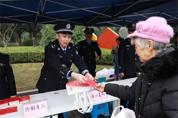 活动中,民警通过开展法治宣传进校园、进社区、进农村活动,向群众宣传宪法知识,使宪法走进日常生活、走进人民群众,同时大力宣传防诈骗、防盗抢等安全常识,不断提高群众法治意识和安全防范意识。(重庆市公安局)