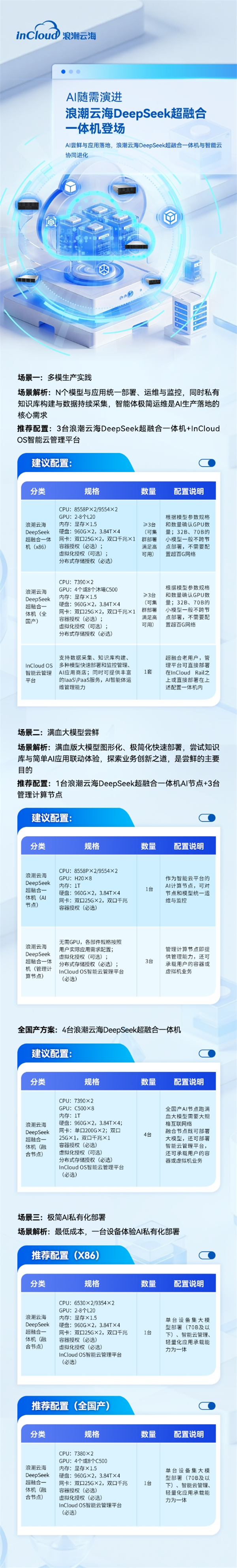 为此,浪潮云海正式发布DeepSeek超融合一体机,针对上述需求提供场景化解决方案,帮助用户根据自身需求快速匹配个性化方案,打造新一代企业级AI云化基座。