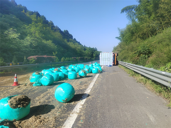 梁平交巡警快速处理一起高速公路货车翻车事故