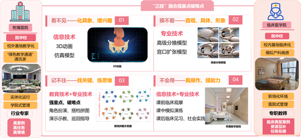 为解决“看不见、摸不着”的问题,团队构建“虚实结合双师双平台”教学环境:引入 3D分娩动画、虚拟仿真软件,将“子宫收缩、宫颈扩张”等内生理过程可视化;用高级分娩模型、宫颈扩张模型让学生“触摸”真实产程,模拟接产操作;通过“角色扮演、搭档拼图”让学生在“教与学”中强化记忆,解决“记不住”的痛点。