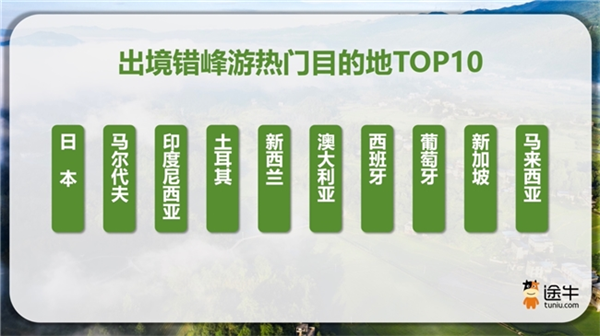 出境错峰游方面,出境长线热度更胜一筹,土耳其、新西兰、澳大利亚、西班牙、葡萄牙、埃及、格鲁吉亚、亚美尼亚、阿塞拜疆、英国等出境长线目的地吸引了更多错峰游用户的关注。出境短线方向,日本、马尔代夫、印度尼西亚、新加坡、马来西亚也保持了较高的热度。