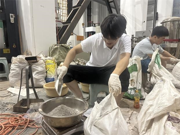 另一分队成员扎根隧道工程灾变防控与智能建养全国重点实验室,开展“赤泥基胶凝材料稳定碎石”课题攻关。从原材料配比、试件制备到长期性能测试,队员们严谨操作、细致记录,在导师的指导下逐步掌握科研全流程。该研究致力于工业固废资源化利用,是团队积极响应“绿色发展”理念、投身“无废城市”建设的切实行动,也为相关行业技术创新提供了有益参考。