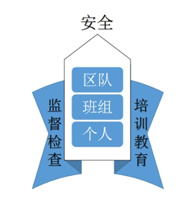 “一体两翼”即:个人自保+班组互保+区队联保的安全管理机制为“一体”,监督检查和培训教育为“两翼”,将矿井安全管理和安全文化理念的思想渗透到每一个班组,引导员工养成良好的安全行为习惯,进一步推动矿井安全管理和实现安全生产,通过“一体两翼”形成特有的矿井安全自主管理文化。