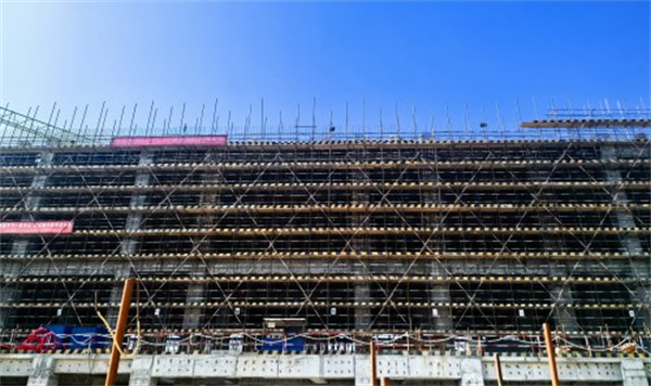 此次封顶的造粒框架为现浇混凝土结构,总高48米,占地面积逾7600平方米,是项目体量最大、技术难度最高的土建单体。建筑共设五层,局部模板支撑高度接近15米,对模板体系的稳定性和安全管理构成严峻挑战。项目团队通过优化支撑方案、强化过程管控,确保了主体结构施工的安全与精准。