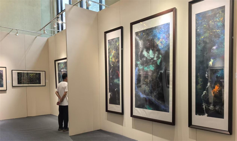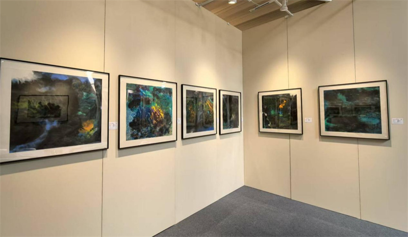 开幕式结束后,门秀敏同与会嘉宾共同浏览彩墨秘境作品展区。本次艺博会,门秀敏共展出三十七幅作品,其中包括15幅荣获2020法国巴黎大皇宫国际艺术沙龙展水介质绘画沙龙特别大奖的作品。据悉,这是自2020年获奖以来,门秀敏首次在国内公众场合展出该系列作品,一经展出,便引起极大的关注。