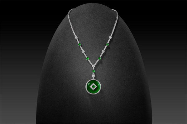 翡翠与黄金、钻石等材质的融合,更令作品焕发夺目的光彩。翡翠的清透、金属的坚毅、钻石的璀璨,相生相协,恰似寰宇初开般的和谐秩序,“天圆地方”的形与意在此合一,凝结为华贵、吉祥、雅致的艺术作品。