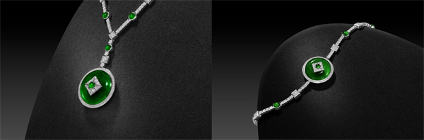 “天圆地方”的东方意境在作品形态中得以具象——方中带圆,守正亦出新;圆中见方,通达且持重。圆与方嵌合共生,翡翠流转弧线与金属利落棱角彼此呼应,于刚柔并济中,将浩渺苍穹与厚德大地凝于方寸,诠释动静互补、阴阳平衡的古老智慧,传递万物共生的东方意境。