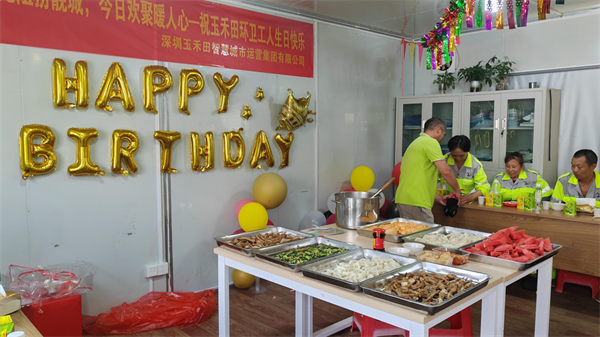 玉禾田领导班子以实际行动传递对一线劳动者的敬意与关怀,本次活动参与人员皆为一线员工,来自各作业班组的7-9月生日的各位环卫工人齐聚一堂,在欢声笑语中做游戏、包饺子、切蛋糕、话家常、抽奖,共同度过了一段难忘的温馨时光。