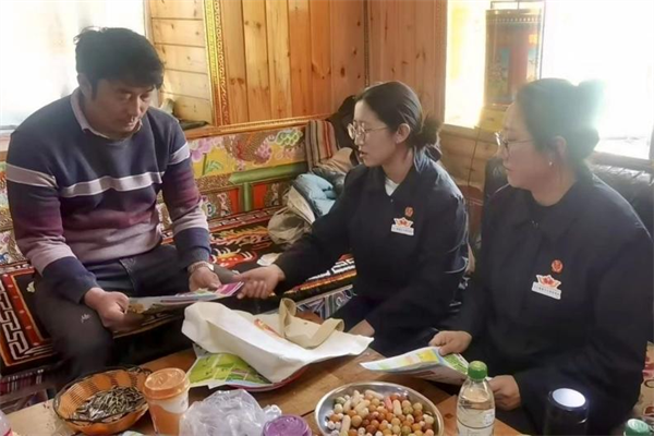 一场在村委会支起的移动“法治课堂”刚开课,正义雪莲女子审判团队的章章就用藏语娓娓道来,把“松茸=房子""虫草=车子”,一比一换算火灾损失,老乡们边看边笑说:"烧掉一亩林子等于砸了十辆拖拉机嘛!"围观人群里爆发出恍然大悟的笑声。在讲解森林防火重要性的同时,现场发放的双语普法漫画让不识字的老人频频点头,也将晦涩难懂的法条转换为“守护神山”“保护松茸山”等村民熟悉的语境,围坐的村民们都一一表示,原来随手丢弃的烟头,就可能烧毁祖祖辈辈守护的神山。