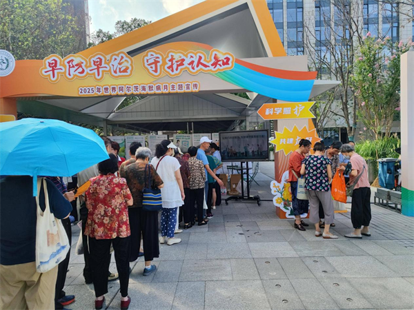 发布时间:2025-09-22 15:36:56 | 来源:中国网 | 作者: | 责任编辑:孙玥9月19日上午,杭州市西湖区古荡街道莲花广场人流如织,一场以“早防早治,守护认知”为主题的大型阿尔茨海默病日公益宣传活动在此温情举行。本次活动由西湖区卫生健康局主导,古荡街道社区卫生服务中心联合浙江医院、省立同德医院、市一医院等多家医疗机构共同承办,旨在提升公众对认知障碍的科学认知,推动早期筛查与干预,营造关注老年脑健康、支持认知障碍家庭的社区氛围。