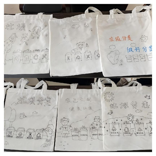 完成涂色后,志愿者鼓励孩子们将涂好的布袋带回家,用于日常购物或物品收纳,减少一次性塑料袋的使用,并带动家庭成员做好垃圾分类。