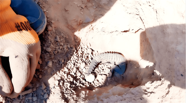 图为施工中发现并人工干预迁移的埃及棘尾蜥个体(受访单位供图)