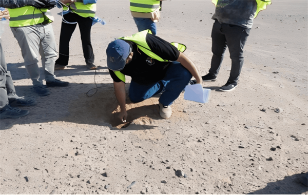 进入全面施工阶段后,项目团队在道路开挖、集电线路布设等核心施工区域,多次监测到埃及棘尾蜥等目标生物活动踪迹,随即启动“快速识别—现场干预—转移处置”一体化迁移流程,捕获的生物个体经编号、登记与初步检查后,移交生态团队开展后续管理,为生态保护闭环夯实前期基础。