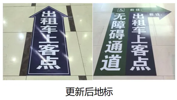 市交通运输局高度重视,第一时间联合产权单位开展排查梳理。8月底前,相关部门对广场无障碍通道、出租车上客点等关键区域的指引地标进行了全面升级换新。清晰的指引地标让旅客出行更方便,也在无形中提升旅客对镇江的好感度。