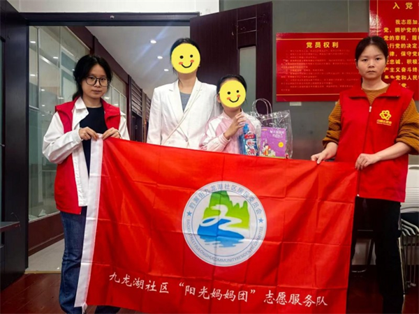 活动尾声,“阳光童伴团”与“阳光妈妈团”志愿者代表采取“现场发放+入户递送”双轨模式,为 20户困境家庭送上链接湖北省阳光物资慈善中心的书籍、洗洁精、肥皂等实用物资,以贴心的物质支持传递温暖;其中,针对行动不便的家庭,志愿者在递送物资的同时,还同步登记《需求清单》,精准收集后续帮扶诉求。最后,全体人员合影留念,为活动画上圆满句号。
