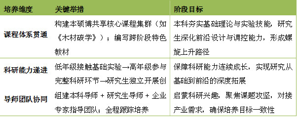 东北林业大学林业工程学科深刻认识到,研究生阶段的高质量创新离不开本科时期的扎实积累。林业工程成栋班作为本硕博贯通培养的标杆,通过“课程体系贯通、科研能力递进、导师团队协同”的一体化机制,实现了从本科到研究生阶段的平滑过渡与能力跃升。