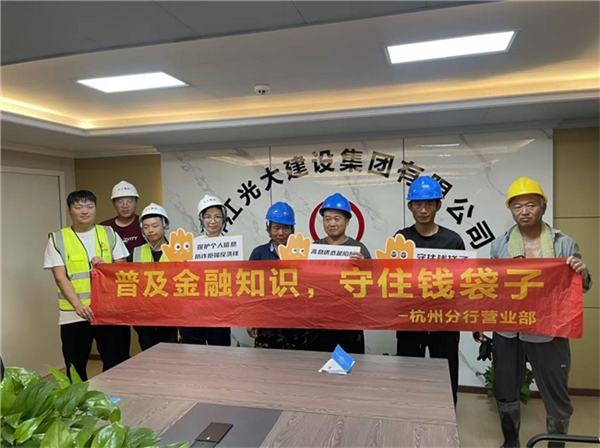 期间,分行致力于拓展宣教新领域,零距离情系工友。桐庐支行走进富泰工地,面向工友深入开展金融知识普及教育。该行的金融宣讲员重点讲解反洗钱与反诈知识,提醒工友切勿外借工资卡、警惕虚假借贷陷阱,并引导大家远离非法中介、电信诈骗等金融侵害行为,切实增强工友群体的风险防范意识和依法维权能力。分行营业部继续推进,走进浙江光大建设集团,通过组织观看警示教育视频等方式,结合非法中介典型套路和真实案例,向工友深入解析其背后潜藏的财产侵害与洗钱风险,特别强调个人信息保护的重要性,并积极号召工友将所学知识传递亲友,扩大宣传覆盖面。